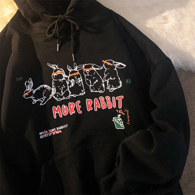 Name: Sudadera con capucha para mujer, con estampado de conejo, estilo coreano, Kawaii, de poliéster, Harajuku